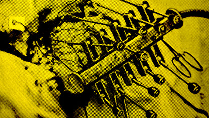 A misplaced device in a turbid instant where the mechanisms of humility ring out.