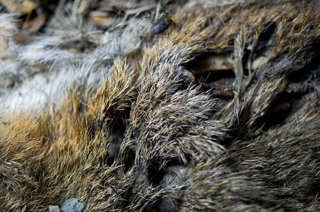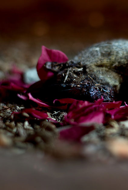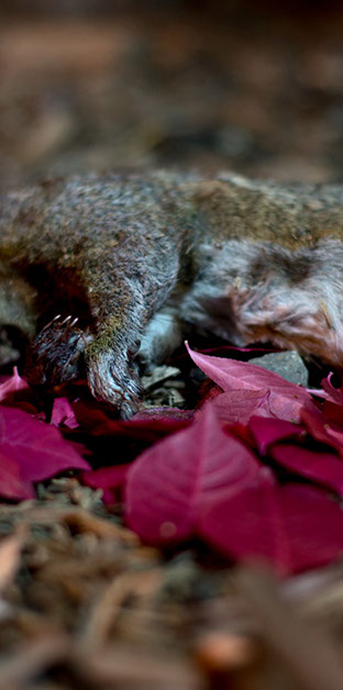 Des corps d'animaux morts, représentés sans intervention sur les lieux-mêmes de leurs découvertes (à partir d'octobre 2014, de légers déplacements ou ajouts sont permis). Ces dépouilles inanimées permettent une proximité normalement inaccessible, d'où les attitudes et les expressions macabres peuvent être saisies; à celles-ci se superposent les rappels de notre propre mortalité, que suscitent ces rencontres. Le titre fait référence à l'usage de carcasses ou de parties d'animaux en guise d'amulettes, notamment selon les rites vaudous.