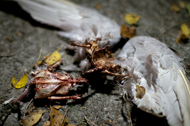 Des corps d'animaux morts, représentés sans intervention sur les lieux-mêmes de leurs découvertes (à partir d'octobre 2014, de légers déplacements ou ajouts sont permis). Ces dépouilles inanimées permettent une proximité normalement inaccessible, d'où les attitudes et les expressions macabres peuvent être saisies; à celles-ci se superposent les rappels de notre propre mortalité, que suscitent ces rencontres. Le titre fait référence à l'usage de carcasses ou de parties d'animaux en guise d'amulettes, notamment selon les rites vaudous.